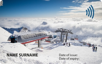 Contactless subscription card with RFID chip and offset personalization